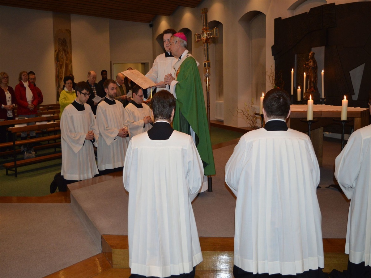 Viele Gäste waren am Sonntag, 24.01.2016 in die Seminarkapelle des Priesterseminars Würzburg gekommen, um zusammen mit Erzbischof Dr. Ludwig Schick die Beauftragung zum Akolythendienst zu feiern.