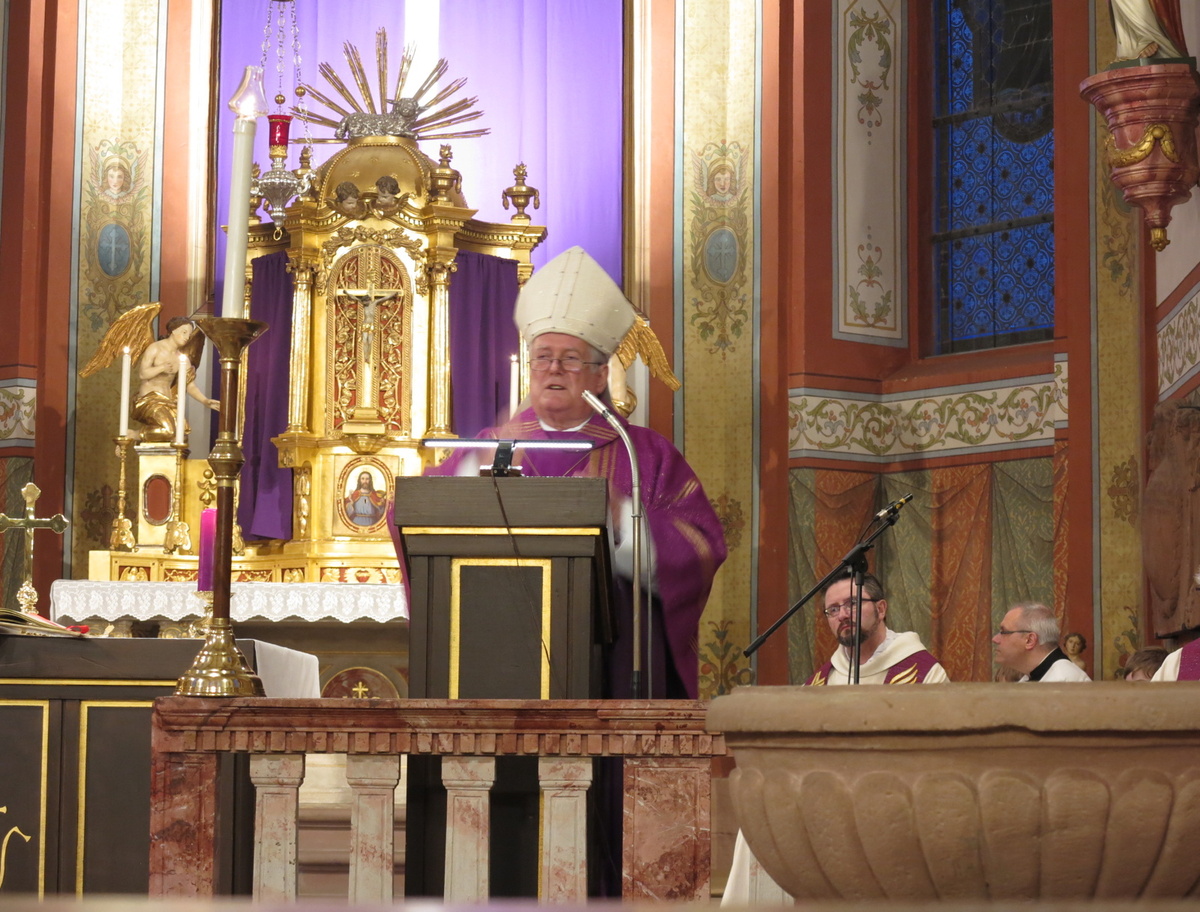 „Mit der Feier des Gottesdienstes werden wir beschenkt und bereichert. Für mich ist das niemals eine Last, sondern eine innere Kraftquelle, mit der sich alles andere bewältigen lässt“, formulierte er sein ganz persönliches Bekenntnis. Er ermutigte seine Zuhörer dazu, aus der Eucharistie Kraft zu schöpfen und diese an andere weiter zu schenken. „Nehmen wir Gottes Maßstäbe ernst und lassen uns von seiner Liebe drängen, den Glauben so zu leben, dass andere davon erfahren. Lassen wir letztlich Gott in uns wirken, wir sind nicht die Macher. Vertrauen wir auf den barmherzigen Gott!“