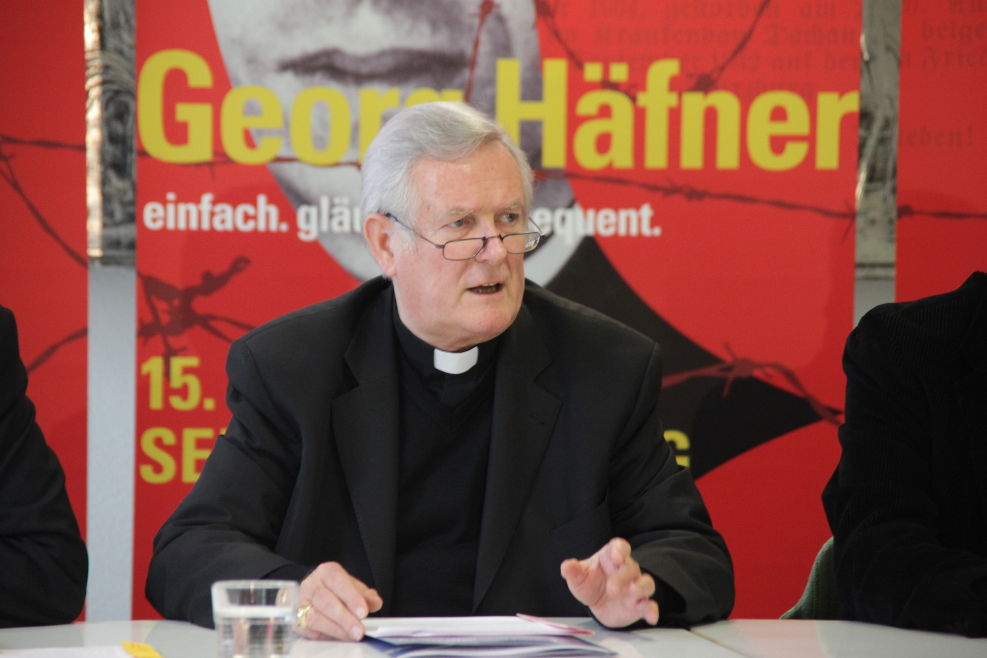 Der Bischof lud alle Katholiken im Bistum Würzburg zur Vorbereitung und zur Feier der Seligsprechung ein. Das Motto versuche, Häfner so darzustellen, wie er sich den Menschen von heute präsentiere. Als einfacher Mensch habe Georg Häfner ein offenes Ohr für die sozialen Fragen seiner Zeit gehabt. „Er war ein Priester, der seinen Auftrag in der unmittelbaren Begegnung mit den Menschen sah.“ Häfners Briefe aus dem Gefängnis und aus dem Konzentrationslager Dachau zeigten, wie er den Weg der Nachfolge Jesu verstanden habe. Der künftige Selige sei ein tiefgläubiger Mensch gewesen. Konsequent sei er im Konzentrationslager seinem Gewissen gefolgt, unterstrich Bischof Hofmann.