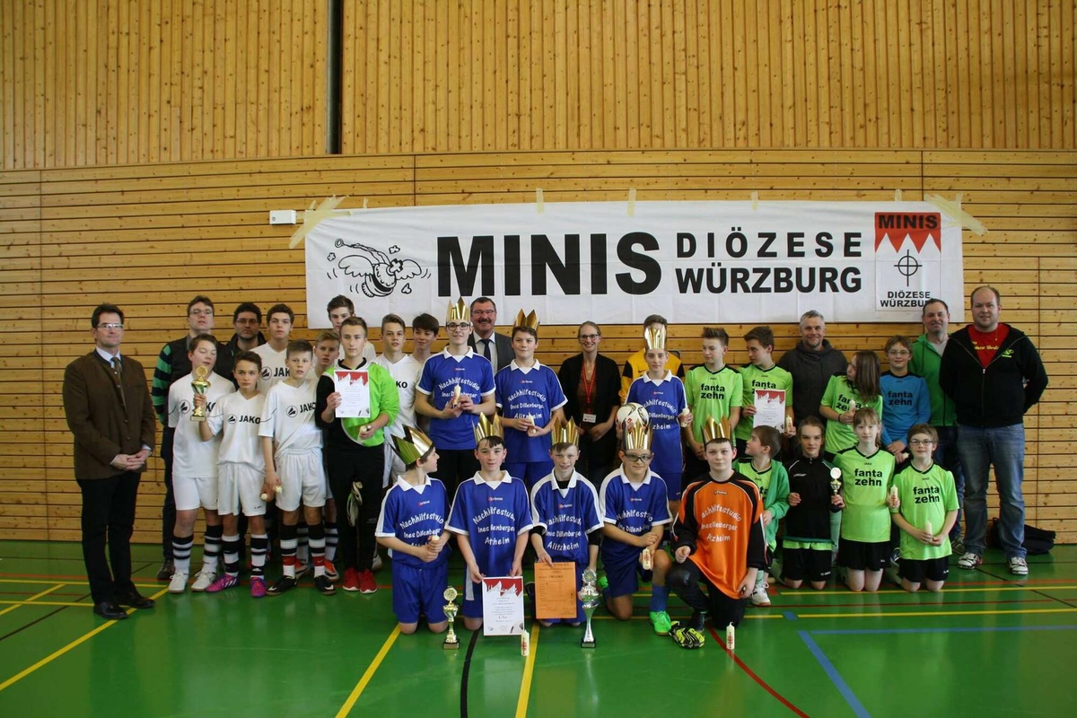 Ihren Meister im Fußball haben die Ministranten im Bistum Würzburg am Samstag, 27. Februar, bei einem Hallenturnier in Mellrichstadt ermittelt. Die Ministranten aus der Pfarreiengemeinschaft (PG) Gaukönigshofen (Dekanat Ochsenfurt) siegten in der Altersklasse U14 vor der PG „Marienhain, Herlheim“ (Dekanat Schweinfurt-Süd) und der PG Zeil (Dekanat Haßberge). In der Altersklasse Ü15 gewannen die Ministranten aus Großostheim (Dekanat Aschaffenburg-West) vor den Vorjahressiegern aus der PG Theres (Dekanat Haßberge) und der PG „Marienhain, Herlheim“.