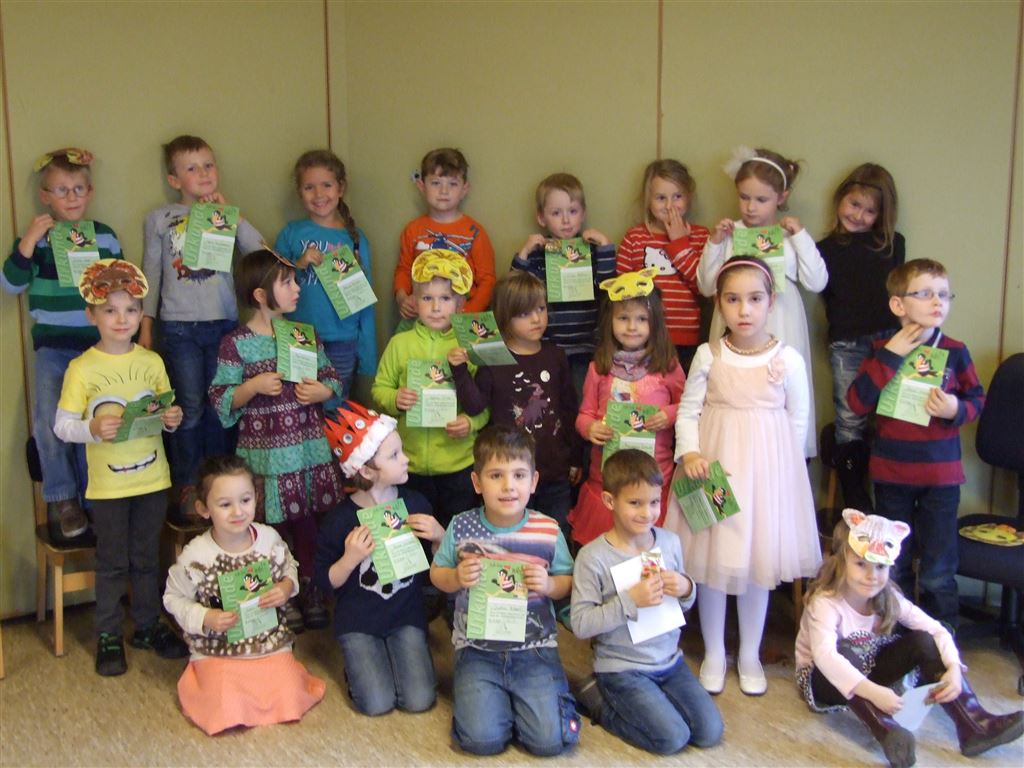 Auch in diesem Jahr fand diese Büchereieinführung für die kleinen Leseratten statt. Nach Absolvierung der beiden Kennenlerntage erhielten nun die Kinder in einer kleinen Feier ihren „Bibliotheksführerschein“. Vor den Eltern und Großeltern setzten die Kinder unter Anleitung von Elisabeth Braun das Kinderbuch „Die Geschichte vom Löwen, der nicht schreiben konnte“ in Szene und begeisterten damit die zahlreichen Gäste im Kindergarten. Stolz präsentierten sie im Anschluss daran ihre neu erworbenen „Führerscheine“.