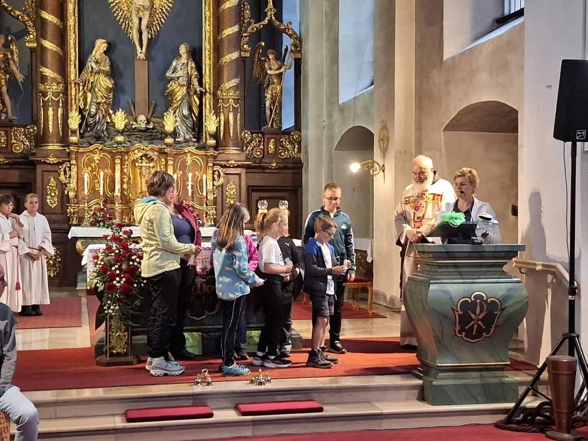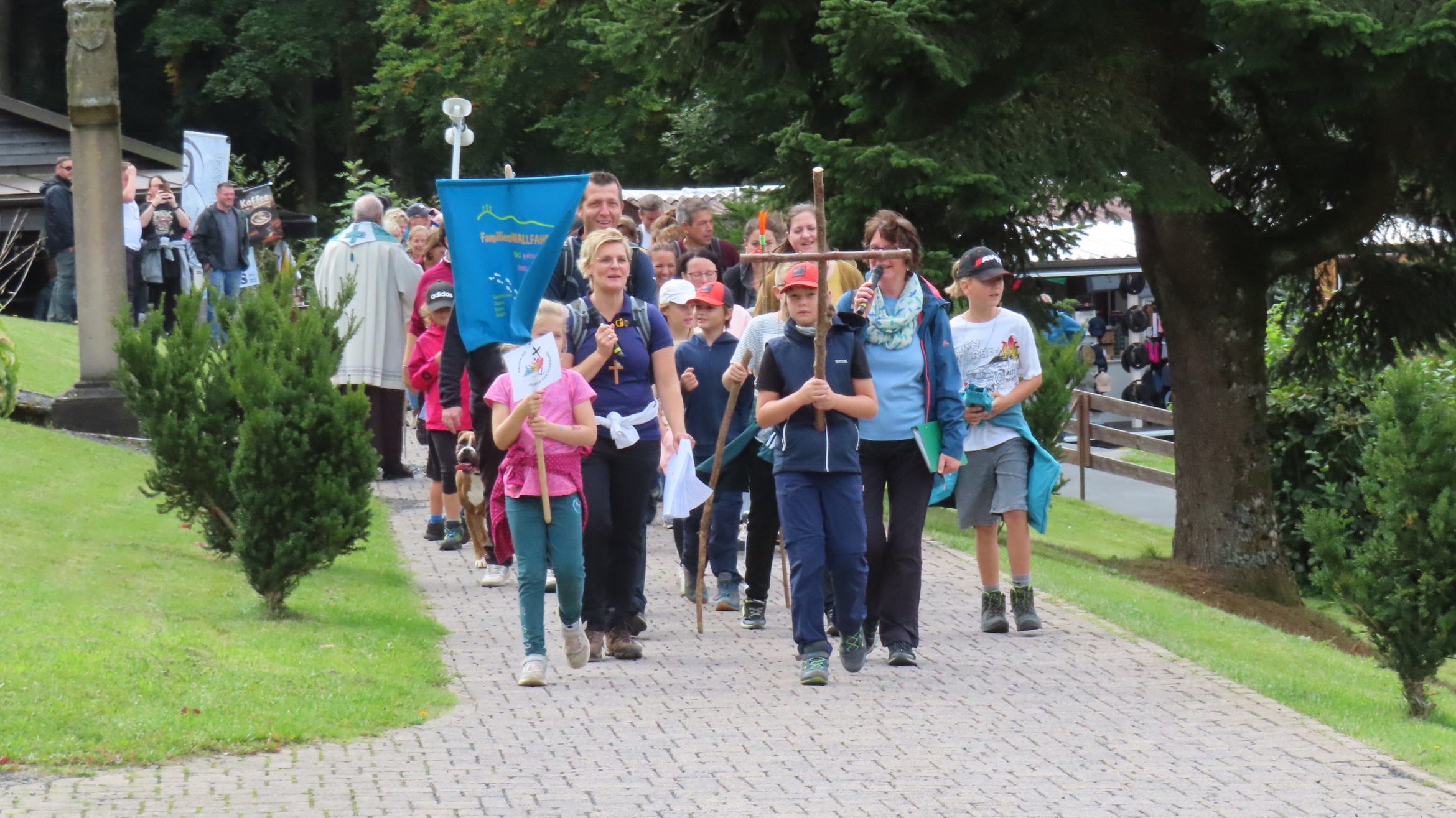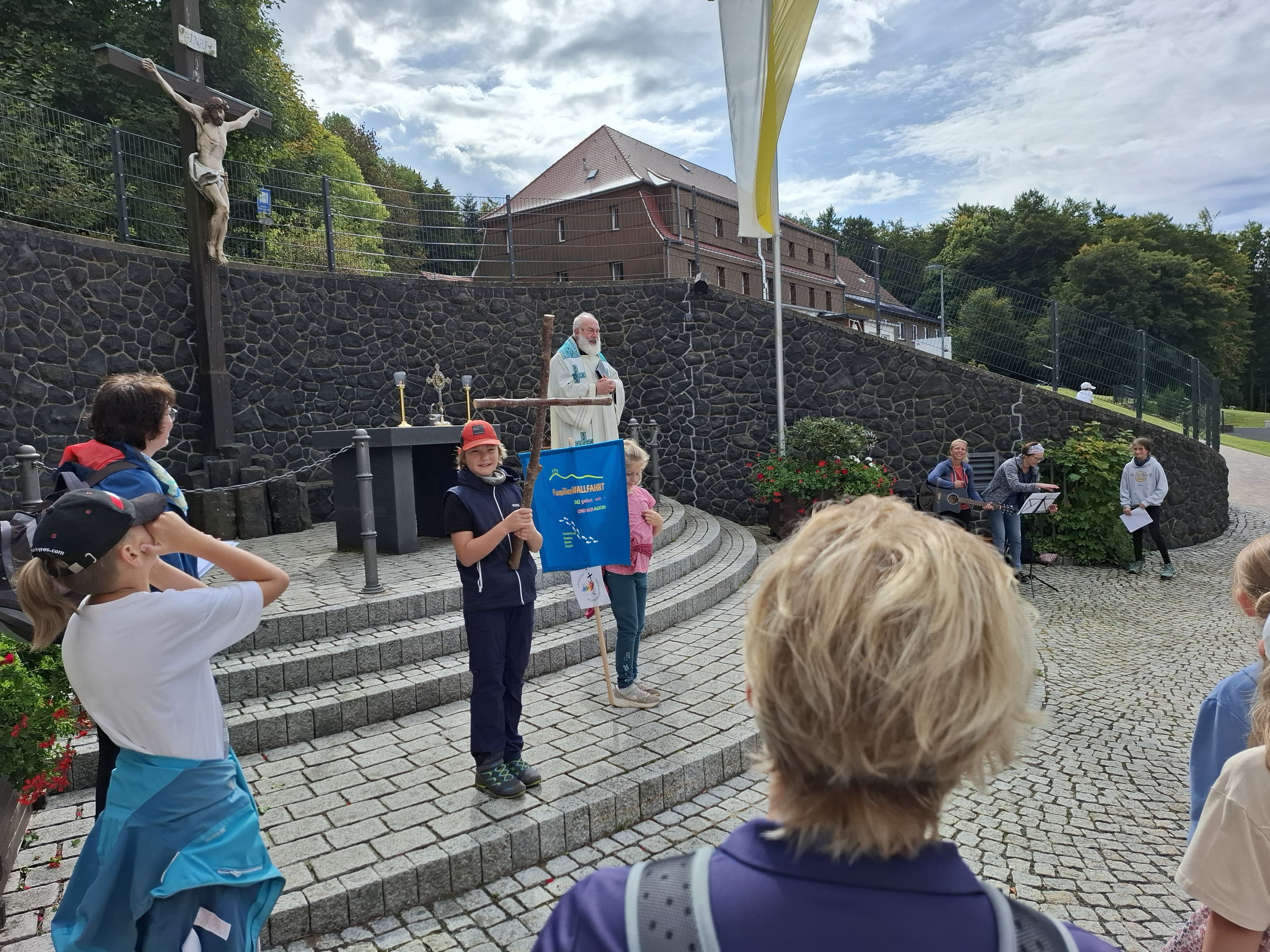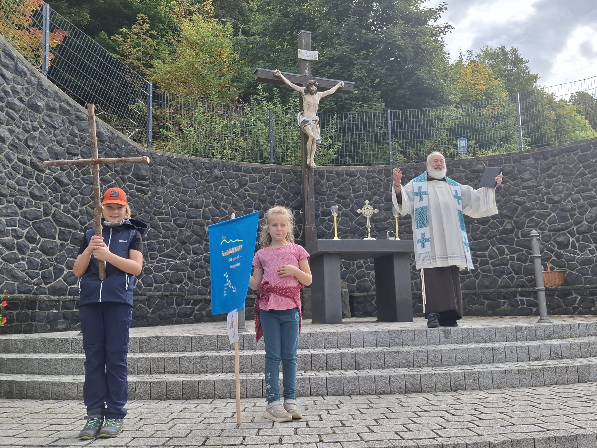 Alle Kinder, die zum erstem Mal dabei waren, bekamen dann auch ihr franziskanisches Wallfahrerkreuz um den Hals gehängt. Ein herzlicher Dank geht an Bruder Korbinian vom Kreuzberg, der diese Kreuzchen für die Kinder heuer wieder gestiftet hat.