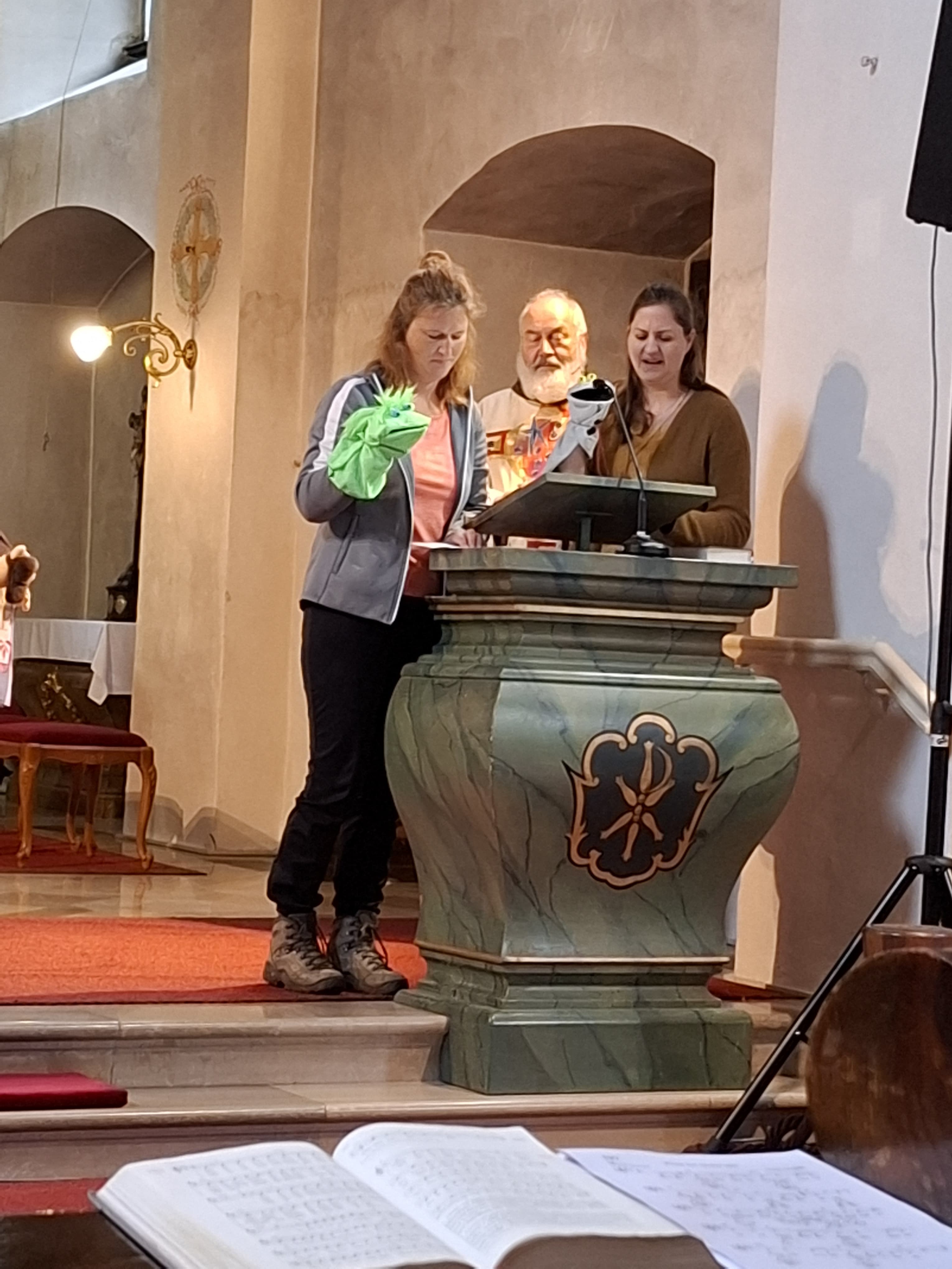 An der nächsten Station hörten die Teilnehmenden aus der Bibel vom Propheten Jeremia, der auch die Hoffnung nie aufgab und den Menschen seiner Zeit davon erzählte. Und plötzlich war da auch der zweite Geselle, nämlich der Hoffnungsfunke, in Form einer lustigen grünen Handpuppe. Beide Handpuppen wurden von Nadja Seiffert „hergestellt“. Auch dafür herzlichen Dank!