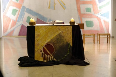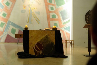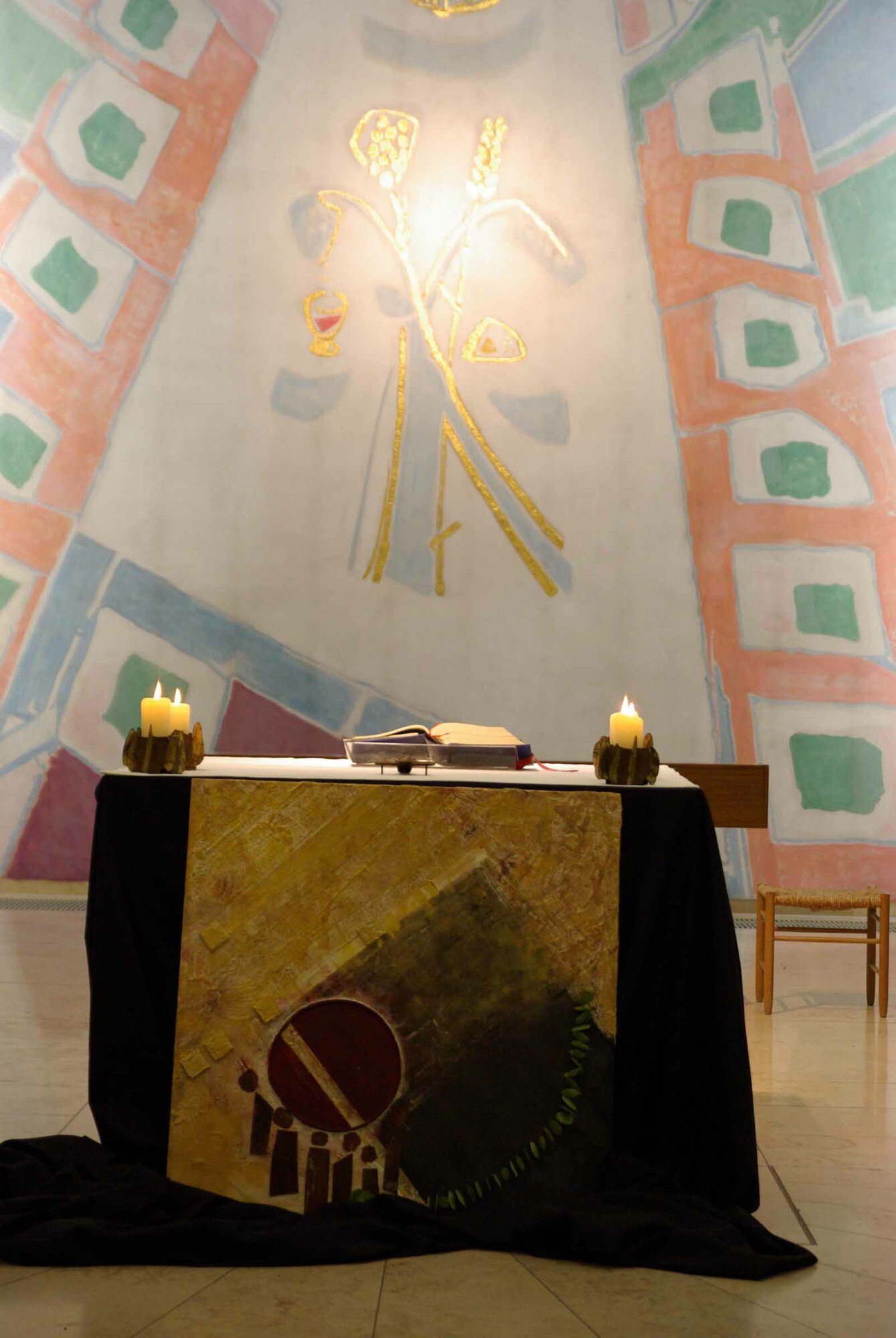 Die Eucharistiefeier wurde von Domdekan Monsignore Günter Putz in Konzelebration mit Pfarrer Arnold Hartlaub und Pfarrer Dr. Manfred Bauer geleitet. Die Schulband der Verbandsschule Baunach übernahm unter der Regie von Religionslehrer Matthias Otto die musikalische Gestaltung. In seiner Predigt ermutigte Domkapitular Putz die Religionslehrer und Religionslehrerinnen, sich von den göttlichen Tugenden Glaube, Hoffnung und Liebe inspirieren und tragen zu lassen. Im Einsatz für den Wert und die Würde des Menschen seien Wertschätzung und Beziehung wichtig. Auf dieser Basis relativiere sich manchmal der Anspruch auf Perfektionismus und es dürften in der Schule auch einmal Fehler passieren. Simone Gödert hatte zum Leitspruch „Es bleiben Glaube, Hoffnung, Liebe“ ein Bild gemalt. In leuchtenden Farben drückt sich darin die hoffnungsvolle Kraft des Göttlichen und der menschlichen Beziehungen aus. Mit dieser Kraft ließen sich auch einschneidende Grenzerfahrungen bewältigen, so Simone Gödert in ihrer Bilddeutung.