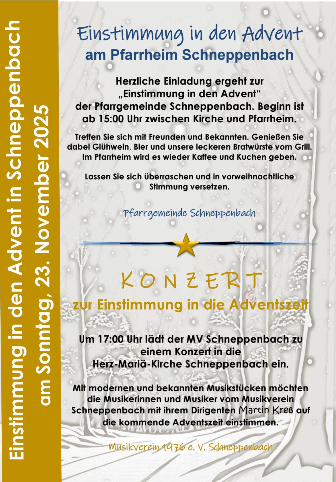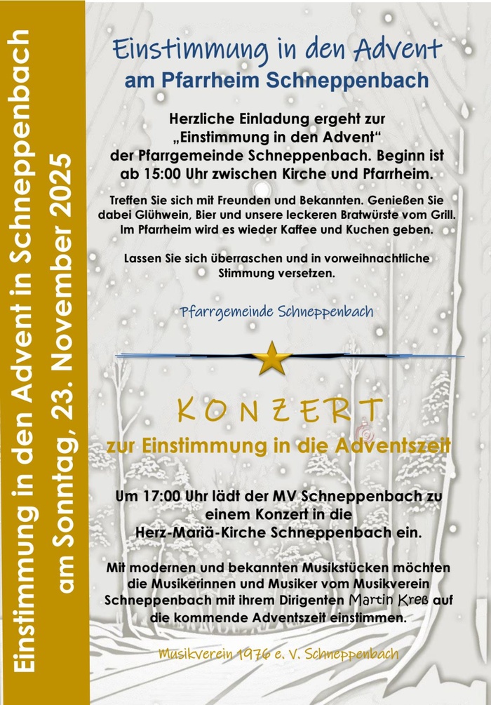 Um 17.00 Uhr stimmt der Musikverein Schneppenbach in der Kirche mit modernen und bekannten Stücken auf die beginnende Adventszeit ein.