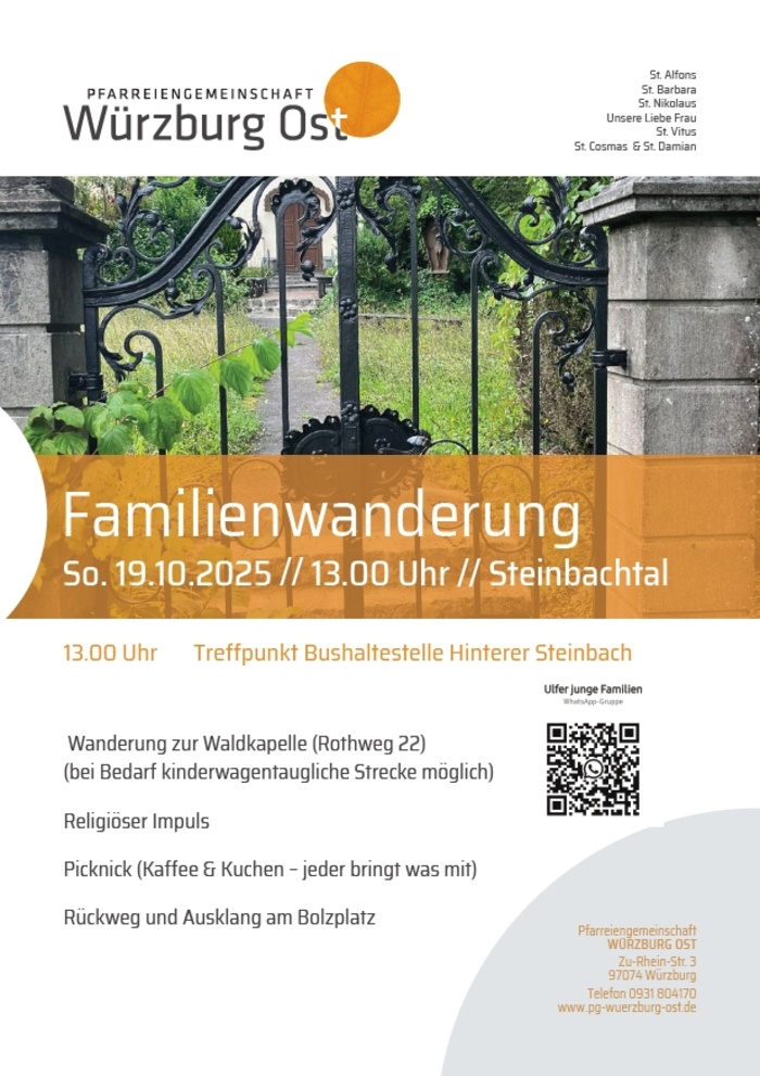 Das Team "ULfer junge Familien" lädt ein zur Familienwanderung im Herbst. Treffpunkt ist die Bushaltestelle Hinteres Steinbachtal. Von dort geht es (ggf. auch auf kinderwagentauglichen Wegen) zur Waldkapelle im Rothweg. Im Anschluss ist Gelegenheit für Picknick und Ausklang am Bolzplatz