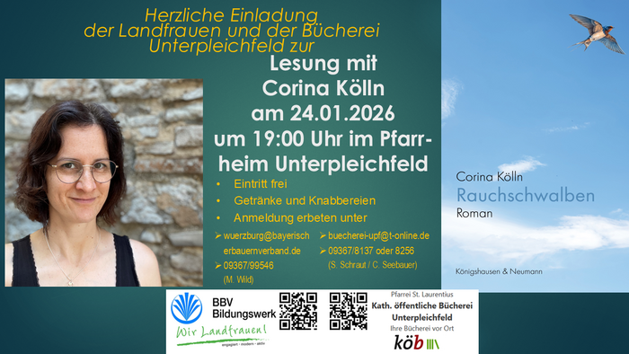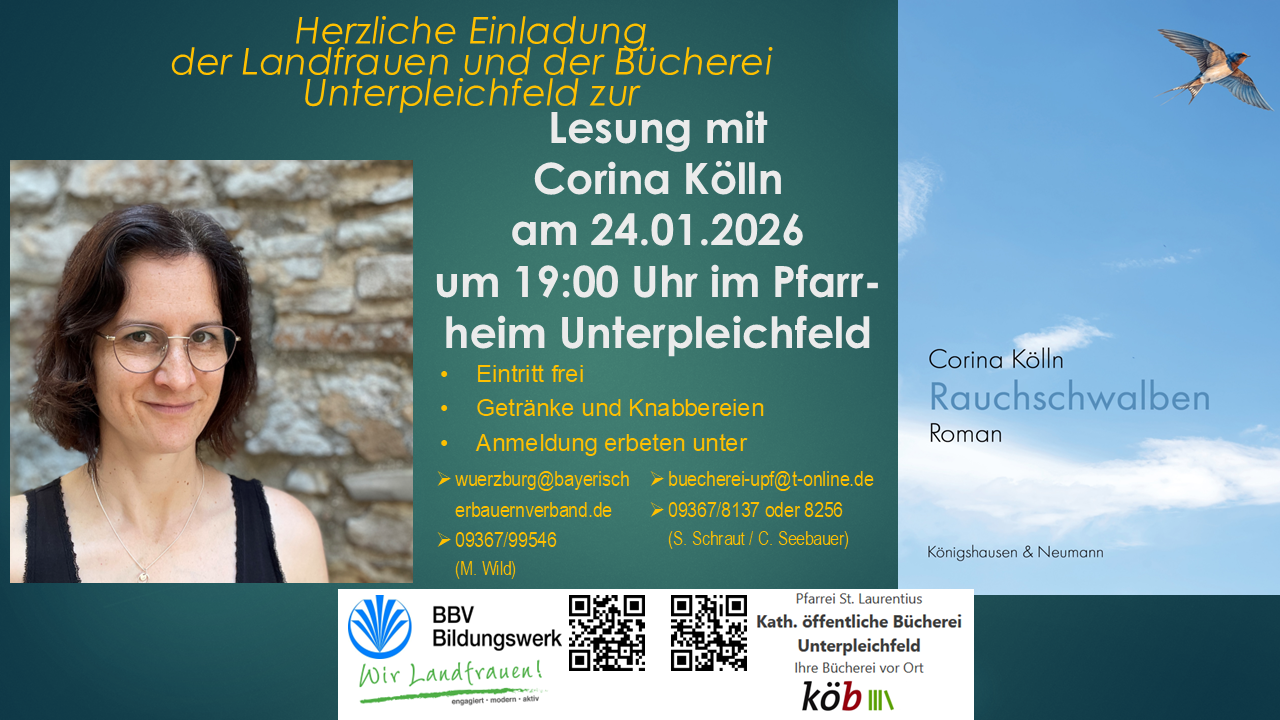 Lesung mit Corina Kölln am 24.01.2026 um 19:00 Uhr im Pfarr-heim Unterpleichfeld
