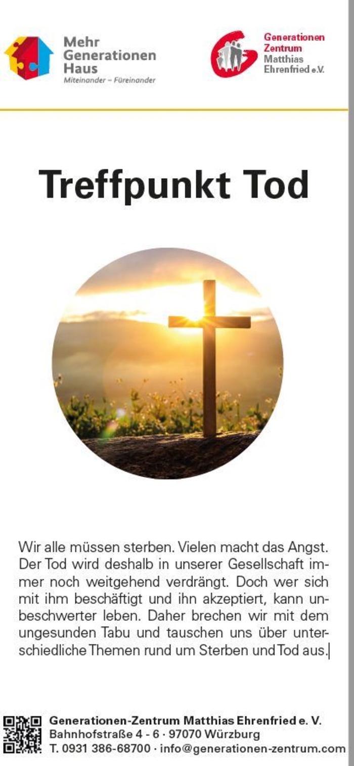 Wenn ein geliebter Mensch stirbt, ist es wichtig, dass ein nahestehender Mensch da ist. Sie erfahren in diesem Kurs, was für die Zeit des Sterbens und der Trauer wichtig ist, wo Sie Hilfe und Unterstützung erhalten und was Sie persönlich tun können. Der Letzte Hilfe Kurs vermittelt Basiswissen und gibt Orientierung zum Thema Sterbebegleitung. In Kooperation mit Malteser Hilfsdienst e.V. Diözese Würzburg, Referat Hospizarbeit.
