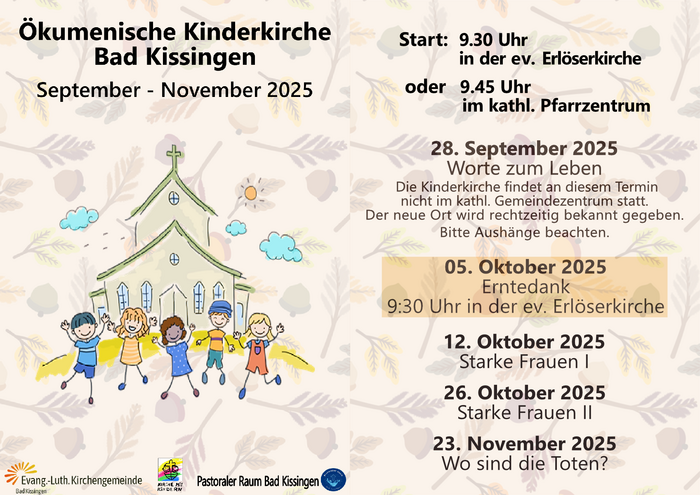 Die evangelische Kirchengemeinde- und der katholische Pastorale Raum Bad Kissingen laden regelmäßig sonntags zur ökumenischen Kinderkirche ein.