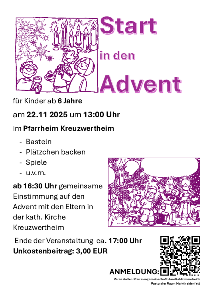 ab 16:30 Uhr gemeinsame Einstimmung auf den Advent mit den Eltern in der kath. Kirche Kreuzwertheim