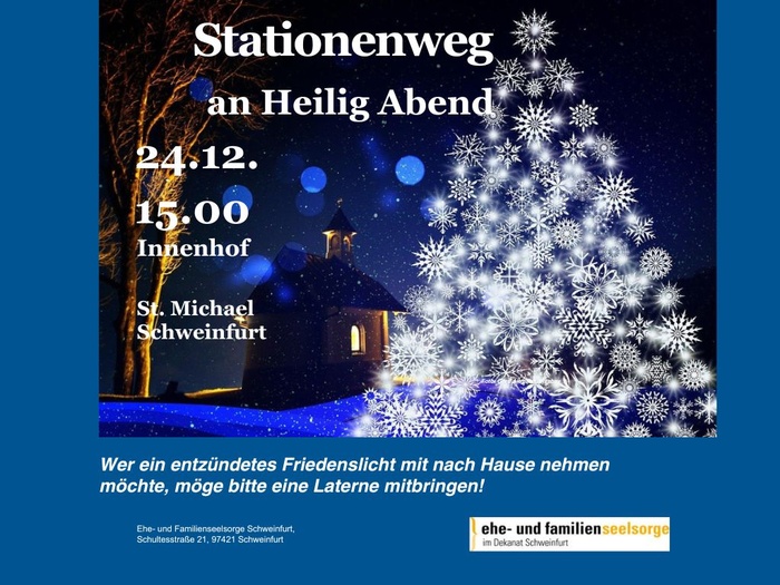 Die Ehe- und Familienseelsorge Schweinfurt bietet an Heilig Abend einen Stationenweg im Innenhof von St. Michael, Florian-Geyer-Str. 13 in Schweinfurt an.
