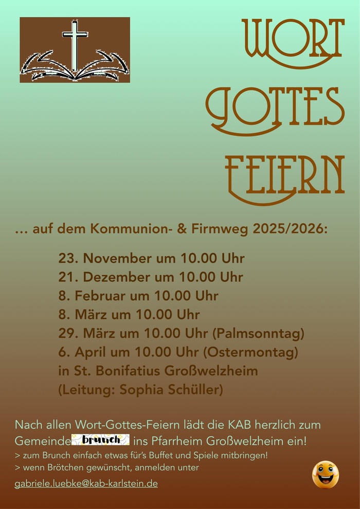 Nach allen Wort-Gottes-Feiern (außer am 29. März) lädt die KAB-Karlstein herzlich zum Gemeinde Brunch ins Pfarrheim Großwelzheim ein.